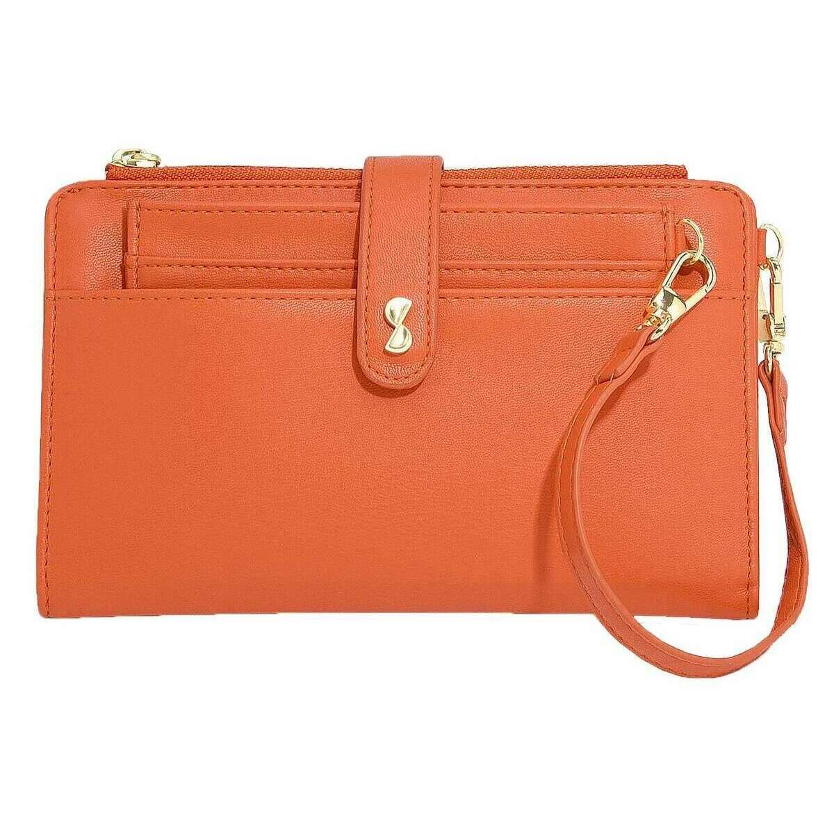 Wykonana ze sztucznej skóry pomarańczowa duża torebka damska autorstwa projektanta Stackers. Wymiary: 12,5 cm (wysokość) x 19,5 cm (szerokość) x 3 cm (głębokość). Wszystkie torebki są dostarczane w komplecie z opakowaniami typu stacker. Duża torebka Stackers – pomarańczowa to must have w podróży! Ta klasyczna i modna pomarańczowa torebka ma wiele kieszeni na pieniądze i karty, wyjmowaną portmonetkę na karty i lusterko kosmetyczne. W komplecie odpinany pasek na nadgarstek i zewnętrzna kieszeń na telefon. Idealne na każde wyjście!