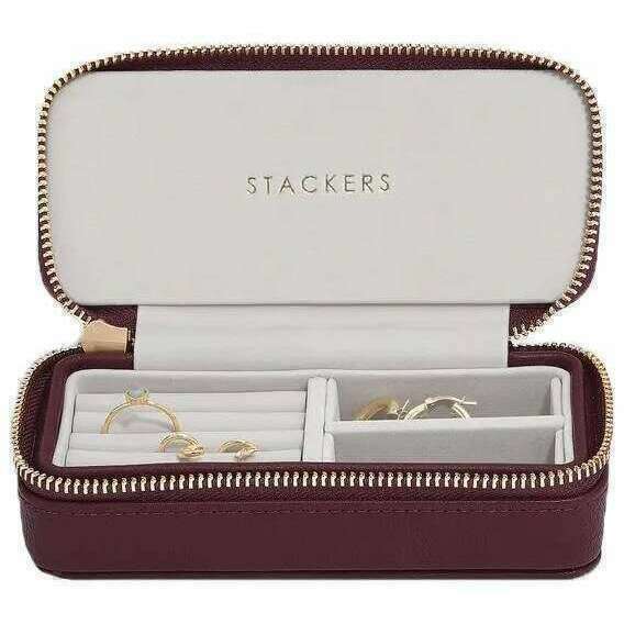 To średnia biżuteria podróżna dla kobiet jest ukazana przez stosy marki w burgundowym kolorze i jest wykonane ze sztucznej skóry i aksamitu. Mierzy 4,5 cm (wysokość) x 15,5 cm (szerokość) x 7 cm (głębokość). Wszystkie pudełka biżuterii są kompletne w opakowaniu stosów. Pudełko biżuterii Medium Travel Stackers - Burgundia to idealna podróż niezbędna do zapewnienia bezpieczeństwa biżuterii w jednym miejscu. Gwarantuje, że nie rozczaruje, z pewnością zrobi to wrażenie małym rozmiarem i miękkim wnętrzem z sekcją pierścienia lub kolczyków oraz dwóch większych sekcji. Zrób to dla każdej stylowej kobiety, która podróżuje z biżuterią.