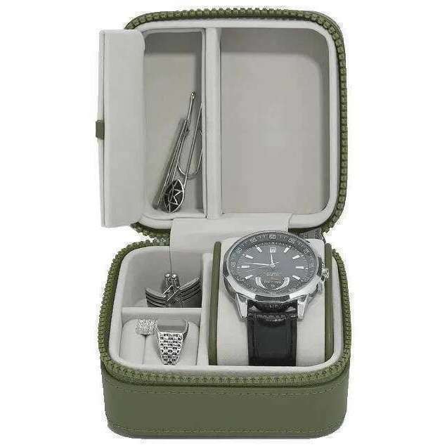Projektanci Stackers przynieśli ci faux skórę i pudełko na płótnie dżentelmeńskie za pomocą zielonych tonów. Mierzy 11 cm (wysokość) x 11 cm (szerokość) x 7 cm (głębokość). Wszystkie pudełka dżentelmenów są kompletne w opakowaniu stosów. Stackers Square Square Travel Watch i biżuteria - zielony idealny dla każdego dżentelmena szukającego inteligentnego i eleganckiego sposobu na zachowanie i bezpieczeństwo małych biżuterii. Wyściełana rolka zegarkowa, aby utrzymać zegarek bez zarysowań, bułkę pierścieniową na pierścienie lub kolczyki, mały głęboki przedział dla luźnych przedmiotów, takich jak spinki do mankietów i pokrywka o drzwiach dla wszelkich dodatkowych luźnych przedmiotów. Zamknięcie zamka wpuszcza bezpieczeństwo podczas podróży lub odpoczynku na bocznym stole lub biurku.