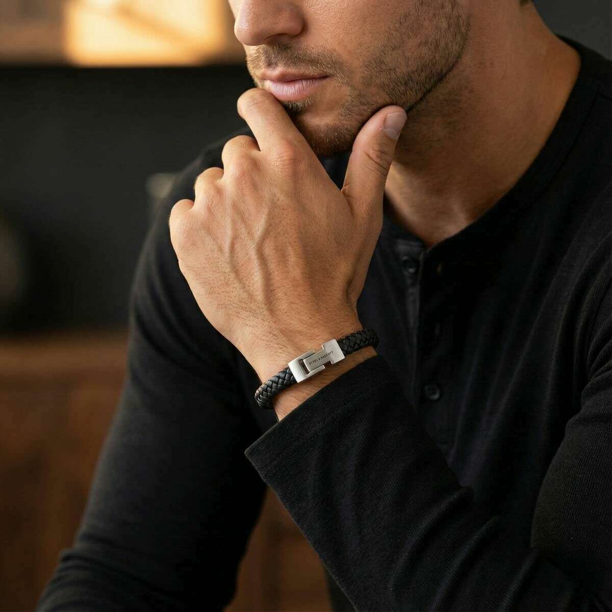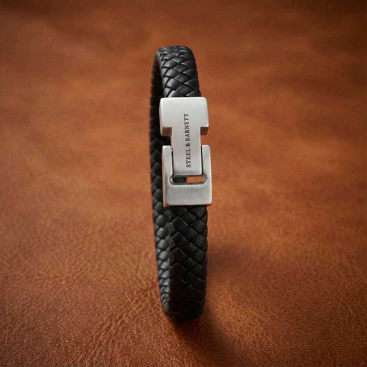 Ta męska pleciona skórzana bransoletka typu archie marki Steel & Barnett jest wykonana w 100% ze skóry nappa i stali nierdzewnej i jest dostępna w kolorze czarnym. Wszystkie bransoletki są dostarczane w komplecie ze stalowym opakowaniem Barnett. Pleciona skórzana bransoletka Steel & Barnett Archie - czarna ucieleśnia idealną równowagę prostoty i elegancji. Profesjonalnie wykonany ręcznie z prawdziwej skóry Nappa, jego gładki pasek o grubości 8 mm zapewnia czystą, minimalistyczną estetykę pasującą do każdego stylu. Projekt podkreśla charakterystyczne, szczotkowane srebrne zapięcie, z drobno wygrawerowanym logo STEEL & BARNETT, zapewniające subtelny akcent wyróżnienia. Zbudowana z myślą o trwałości bransoletka posiada zapięcie ze stali nierdzewnej 316L wysokiej jakości, słynącej z trwałości i odporności na korozję. Magnetyczne zapięcie zapewnia łatwe noszenie, zapewniając bezpieczne i wygodne dopasowanie przez cały dzień. Wszechstronny i wyrafinowany, Archie płynnie przechodzi od formalnych okazji do codziennych stylizacji, dodając warstwę dyskretnego wyrafinowania do każdego stroju.