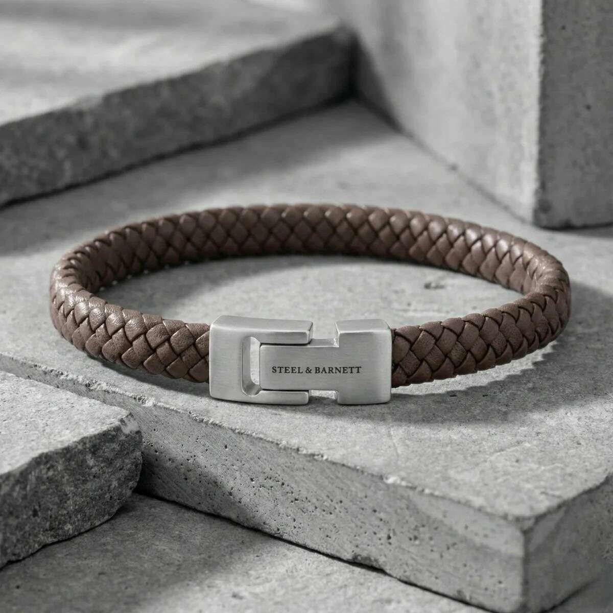 Przedstawiamy męską plecioną skórzaną bransoletkę Archie marki Steel & Barnett, wykonaną w 100% ze skóry nappa i stali nierdzewnej w kolorze brązowym. Wszystkie bransoletki są dostarczane w komplecie ze stalowym opakowaniem Barnett. Pleciona skórzana bransoletka Steel & Barnett Archie - brązowa ucieleśnia idealną równowagę prostoty i elegancji. Profesjonalnie wykonany ręcznie z prawdziwej skóry Nappa, jego gładki pasek o grubości 8 mm zapewnia czystą, minimalistyczną estetykę pasującą do każdego stylu. Projekt podkreśla charakterystyczne, szczotkowane srebrne zapięcie, z drobno wygrawerowanym logo STEEL & BARNETT, zapewniające subtelny akcent wyróżnienia. Zbudowana z myślą o trwałości bransoletka posiada zapięcie ze stali nierdzewnej 316L wysokiej jakości, słynącej z trwałości i odporności na korozję. Magnetyczne zapięcie zapewnia łatwe noszenie, zapewniając bezpieczne i wygodne dopasowanie przez cały dzień. Wszechstronny i wyrafinowany, Archie płynnie przechodzi od formalnych okazji do codziennych stylizacji, dodając warstwę dyskretnego wyrafinowania do każdego stroju.