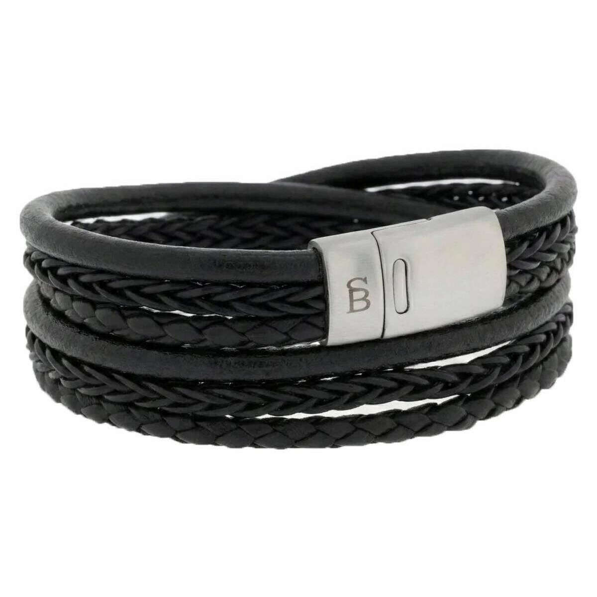 Wielowarstwowa skórzana bransoletka Steel & Barnett Bonacci - czarna