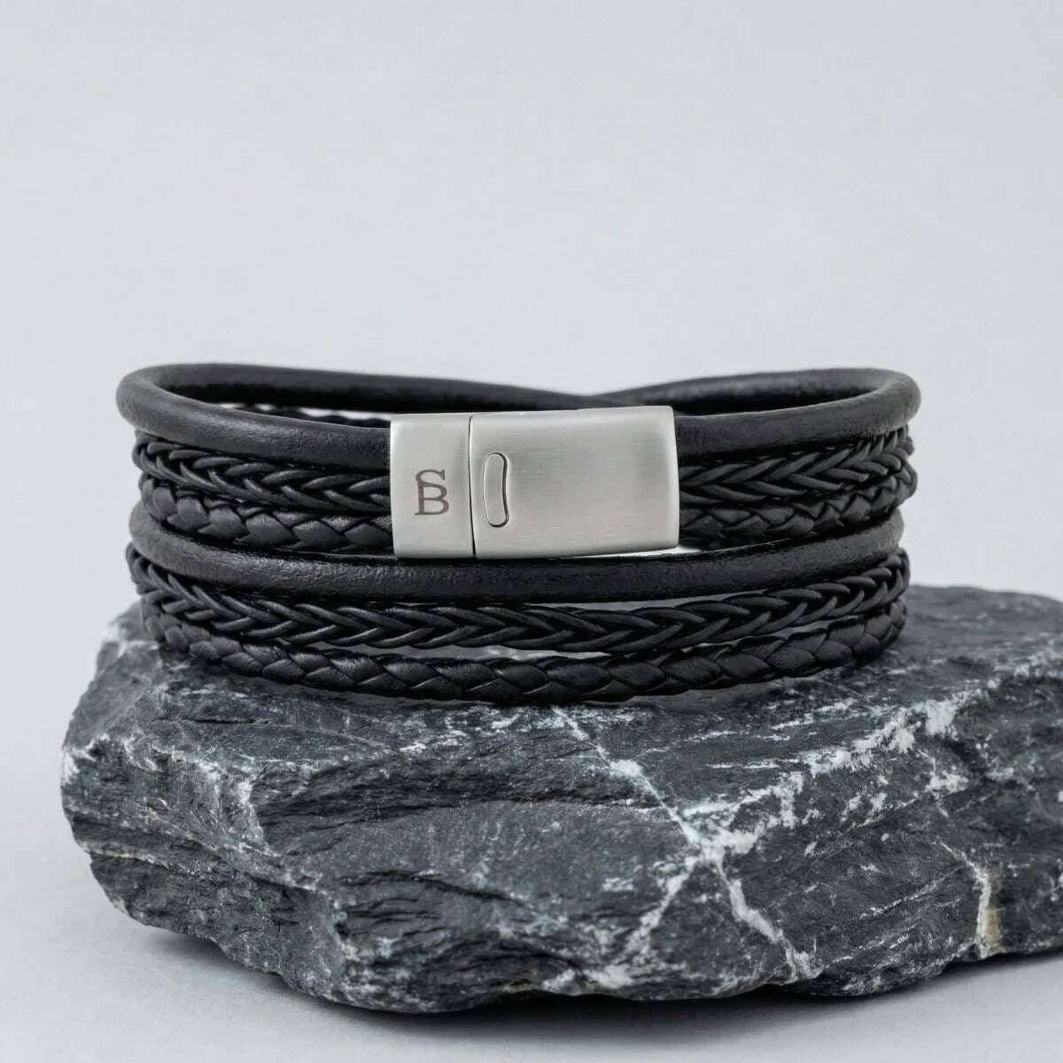 Ta męska wielopasmowa skórzana bransoletka bonacci marki Steel & Barnett jest wykonana w 100% ze skóry bydlęcej i stali nierdzewnej i jest dostępna w kolorze czarnym. Wszystkie bransoletki są dostarczane w komplecie ze stalowym opakowaniem Barnett. Warstwowa wielopasmowa skórzana bransoletka Steel & Barnett Bonacci w kolorze czarnym to wyrafinowany wyraz kunsztu i ponadczasowego stylu. Wykonane ręcznie z doskonałej jakości prawdziwej skóry bydlęcej, każde pasmo jest starannie splecione, aby stworzyć bogatą, warstwową teksturę, która świadczy zarówno o jakości, jak i wyrafinowaniu. Szerokość 12 mm zapewnia odważny, a jednocześnie wszechstronny wygląd, dzięki czemu nadaje się do noszenia na co dzień lub na uroczyste okazje. Bransoletka wykończona jest zapięciem ze szczotkowanej stali, wykonanym ze stali nierdzewnej 316L, zapewniającej wyjątkową trwałość i odporność na korozję. Konstrukcja zapięcia magnetycznego zapewnia łatwe zapinanie, a jednocześnie zapewnia bezpieczne i wygodne dopasowanie przez cały dzień. Elegancka, trwała i starannie zaprojektowana bransoletka Bonacci to wyjątkowy dodatek, który uzupełnia nowoczesny styl klasycznym akcentem.