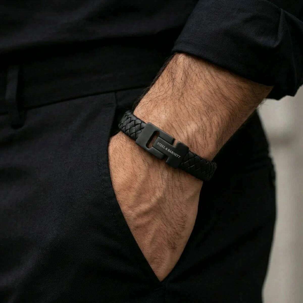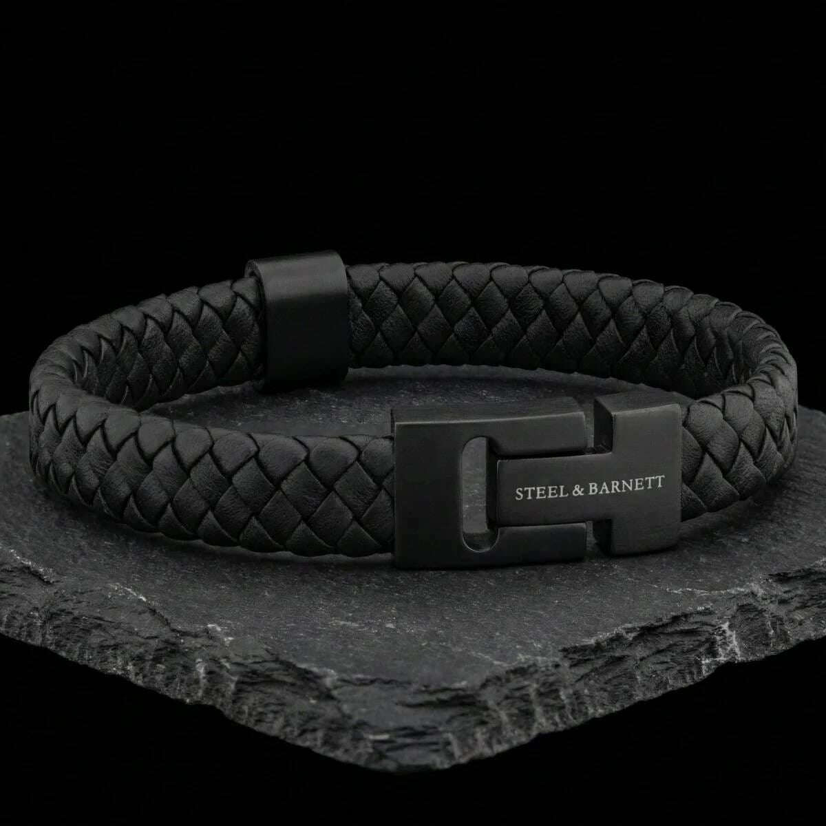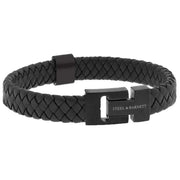 Gruba pleciona skórzana bransoletka Steel & Barnett Harrison - edycja czarna