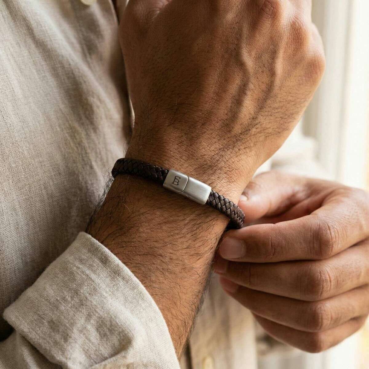 Projektant Steel & Barnett przedstawia męską bransoletkę wykonaną w 100% ze skóry bydlęcej i stali nierdzewnej w odcieniach brązu w stylu vintage. Wszystkie bransoletki są dostarczane w komplecie ze stalowym opakowaniem Barnett. Elegancka pleciona skórzana bransoletka Steel & Barnett Riley w kolorze Vintage Brown została wykonana tak, aby uosabiać zarówno siłę, jak i niezawodność, oferując wyrafinowany dodatek pasujący do każdej kolekcji. Wykonany w 100% z prawdziwej skóry bydlęcej, jego wąski profil o grubości 6 mm ma elegancko pleciony design, który zapewnia subtelne wyrafinowanie bez utraty trwałości. Zapięcie ze szczotkowanej stali, wykonane ze stali nierdzewnej 316L, zapewnia wyjątkową odporność na zużycie i korozję, a magnetyczne zamknięcie zapewnia bezpieczne i wygodne dopasowanie wokół nadgarstka. Ta starannie zaprojektowana i niezwykle stylowa bransoletka jest idealnym wyborem dla każdego, kto szuka minimalistycznego, ale wyróżniającego się skórzanego dodatku, który podkreśli codzienny strój subtelną elegancją.