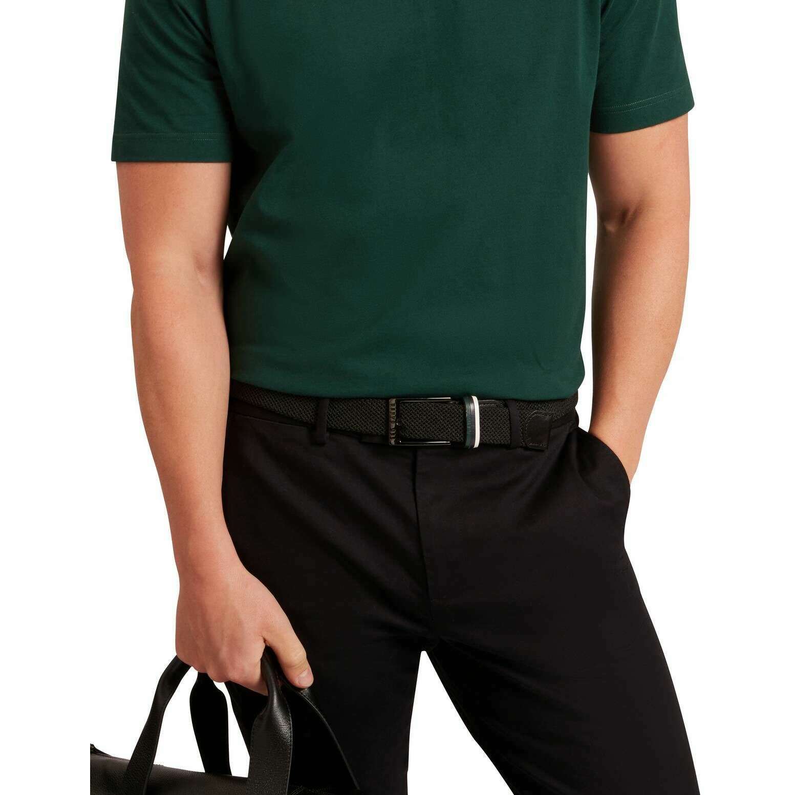 Ten męski skórzany pasek Austiin, elastyczny pasek marki Ted Baker jest wykonany ze 100% bydlęcej skóry i jest prezentowany w kolorze czarnym. Wszystkie pasy są wyposażone w opakowanie Ted Baker. TED BAKER Austiin tkany skórzany pasek - czarny będzie doskonałego codziennego noszenia z tkanym projektem, ponieważ jest to lekkie elastyczne, aby zapewnić maksymalny komfort podczas noszenia. Ten prosty, ale skuteczny pas pasuje idealnie ze wszystkimi strojami, niezależnie od tego, czy jest to swobodny, czy formalny, zapewniając pełny i bezpieczny wygląd. Bluga metalowa dodaje wyrafinowanego i drogiego dotyku, a jednocześnie jest kompletny z subtelną grawerowaną brandingiem Ted Baker.