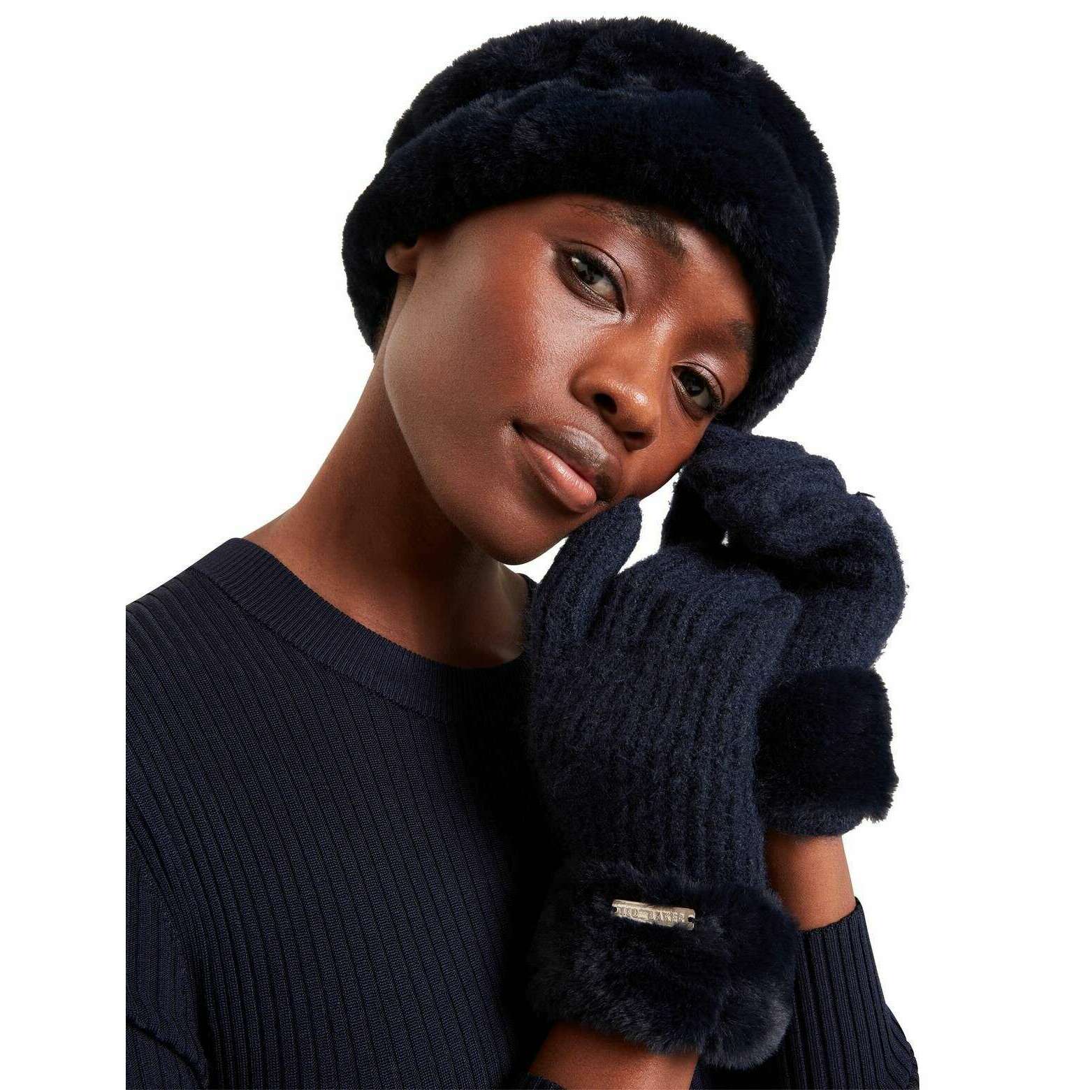 Ted Baker Furinni Faux Furt Pasple i rękawiczki - marynarka wojenna
