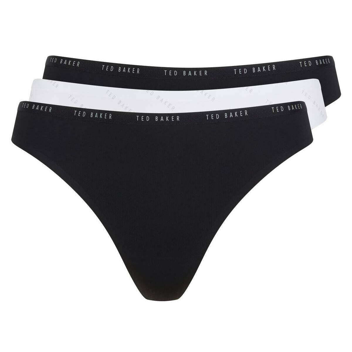 Ted Baker Indie – 3 pary stringów No Show z wytłoczonym wzorem – czarne