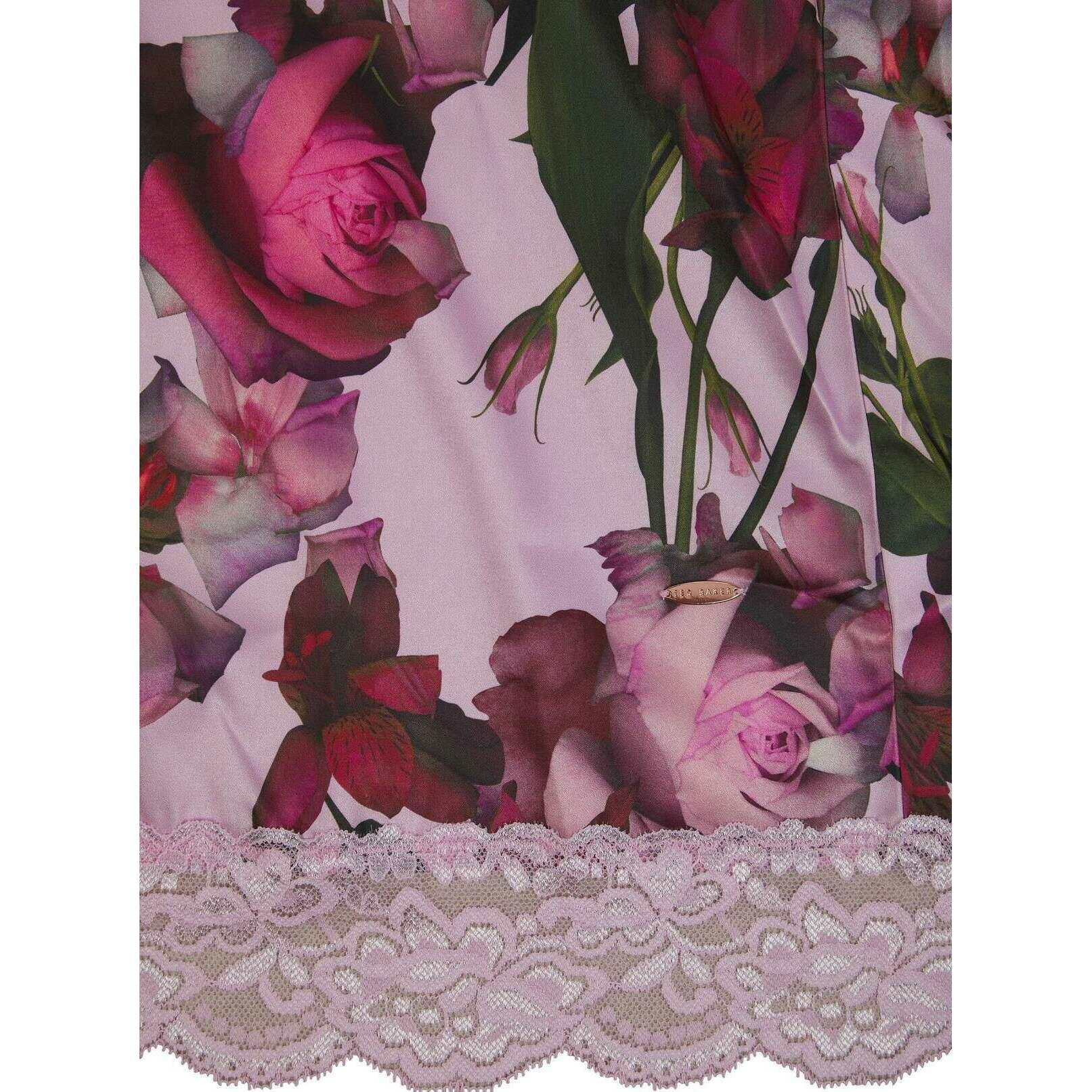 Damska szata typu kimono typu Taylor firmy Ted Baker w kolorze różowym, wykonana w 97% z poliestru i w 3% ze spandeksu. Również różowy szlafrok z nadrukiem cyfrowym ma kwiatowy wzór. Wszystkie szlafroki są dostarczane w komplecie z opakowaniami firmy Ted Baker. Luksusowa i wyrafinowana szata kimono Ted Baker Taylor z różowym nadrukiem cyfrowym stanie się doskonałym dodatkiem do każdej kolekcji odzieży damskiej. Jedwabisty wygląd z kwiatowym wzorem na całej powierzchni, rękaw o długości 3/4, koronka na rękawach i u dołu oraz pasek tworzą razem szykowny wygląd. Miękki i oddychający materiał zapewnia ciepło, a jednocześnie chłód podczas wypoczynku w domu. Wykończony metalową przywieszką Ted Baker.