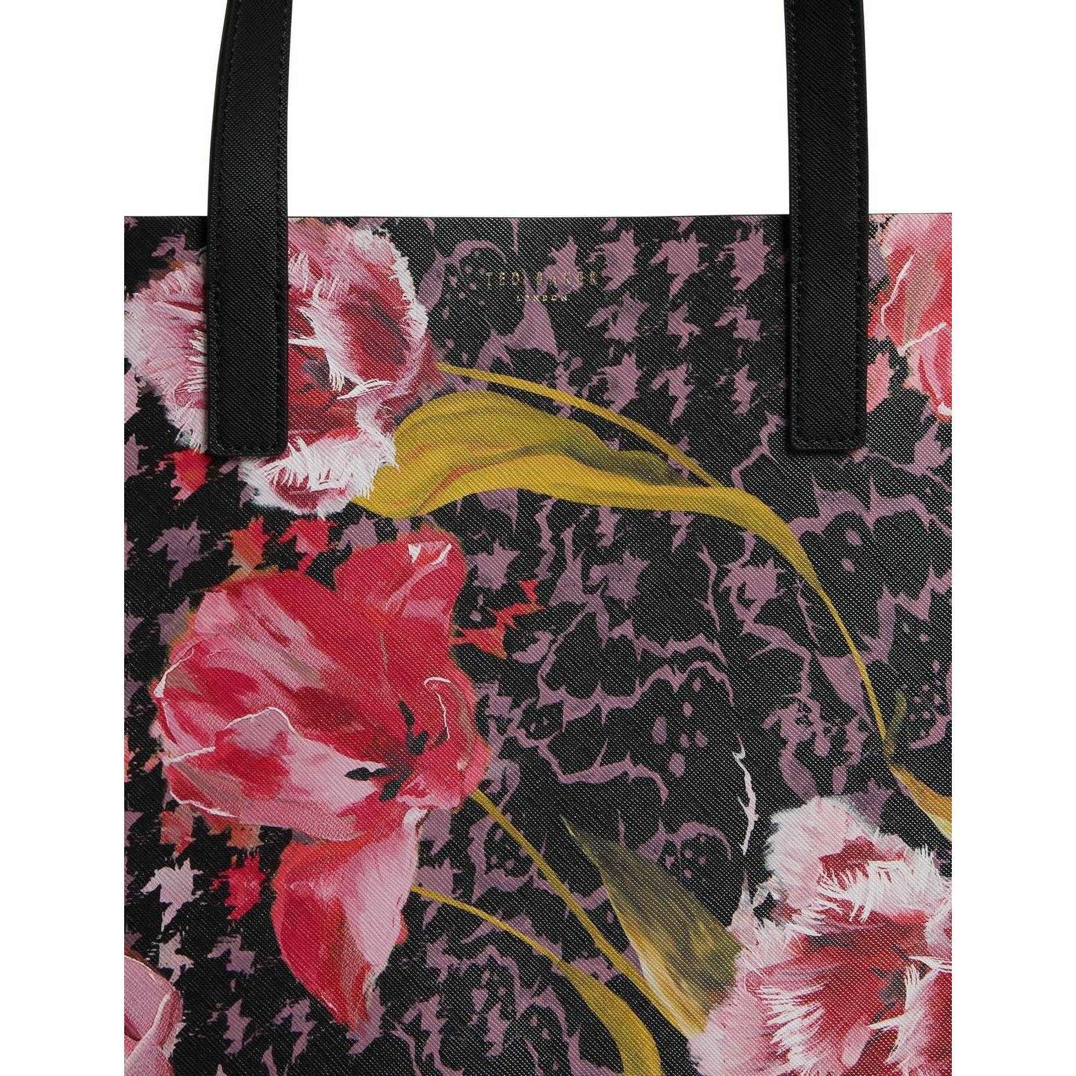 • Kwiatowy nadruk Houndstooth, sztuczna skóra, konsystencja Crosshatch, 2 ramię, wewnętrzna kieszeń na zamek błyskawiczny, folia Ted Baker Branding