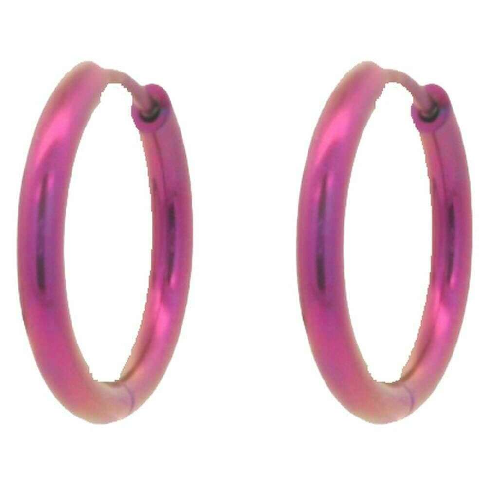 Ti2 Tytanowe średnie okrągłe kolczyki koła na zawiasach - różowe