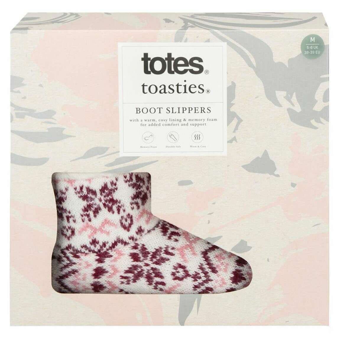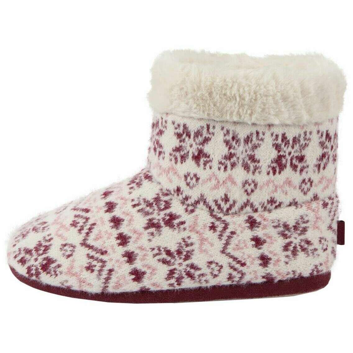 Wprowadzając kapcie butów targowych na wyspie dla tostów, są one produkowane z 60% poliestru, 40% akrylowego i syntetycznego zamszu w kolorze fioletowym fairisle. Również fioletowe kapcie są zaprojektowane we wzorze fairisle, wszystkie kapcie są wyposażone w opakowanie tostów. TOTES TOASTIEIES FAIL BOOT BOT BOT -BUPPERS - Fairisle Purple będzie idealnie łączyć się z dowolnym z twoich zimowych PJS, aby całkowicie przytulny wygląd, aby się zrelaksować po długim zimnym dniu. Długość rozruchu nie tylko utrzymuje stopy przytulne, ale także kostki z miękką i ciepłą sztuczną podszewką futra, a dodana pianka pamięci zapewnia optymalny komfort podczas spaceru po domu. Zakończeniem tego wyglądu jest Wintery Fair Isle Knit.
