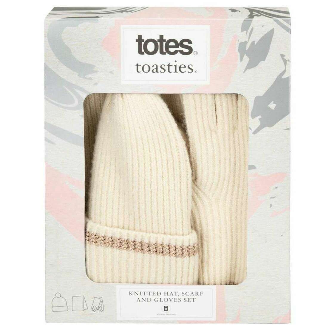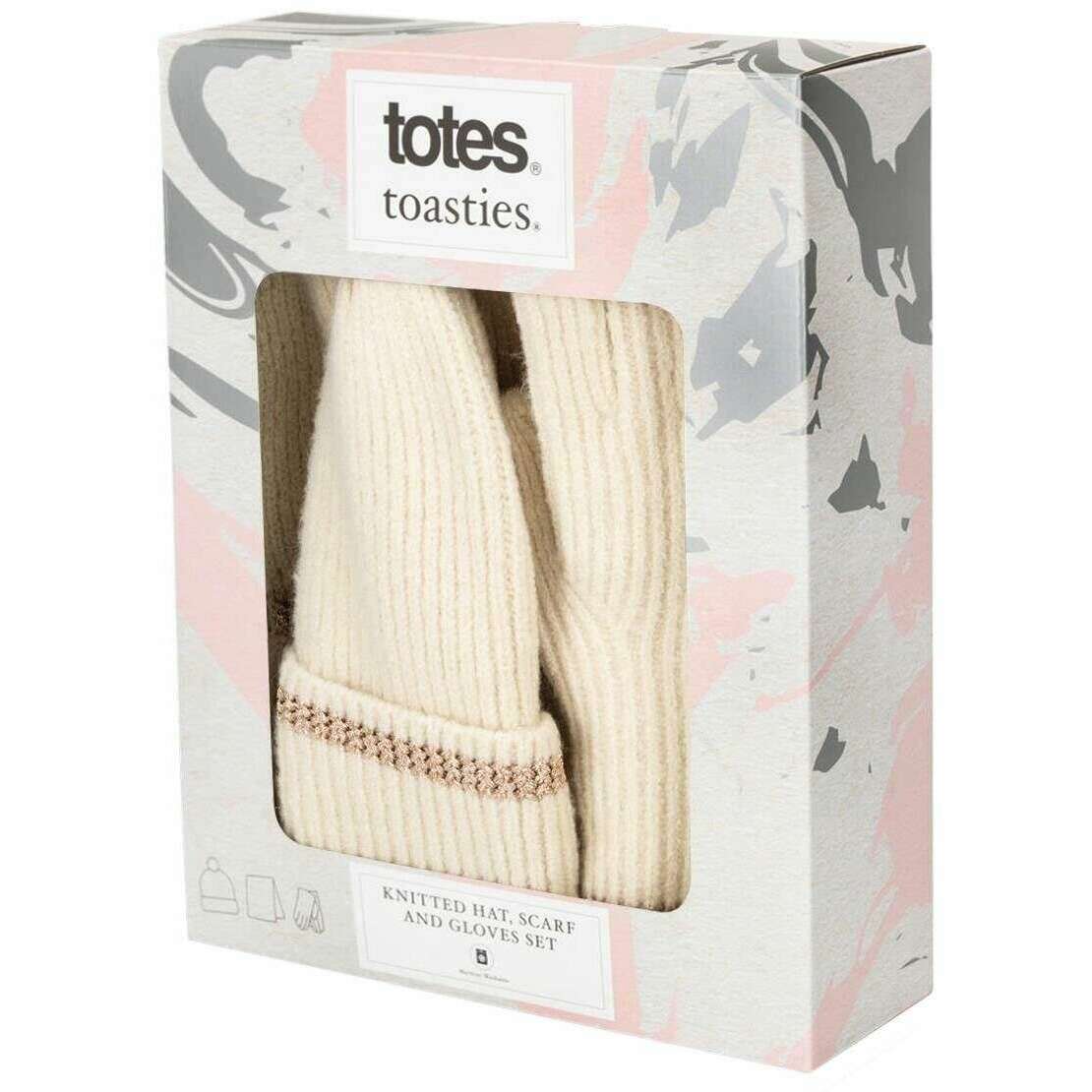 Zestaw upominkowy z dzianinową czapką i rękawiczkami Totes Totes - krem owsiany