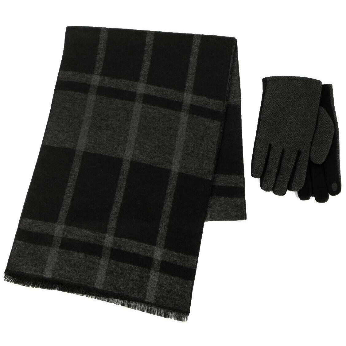 Zestaw upominkowy Totes Toasties z domieszką wełny w kratkę i rękawiczkami z podszewką termiczną - czarny