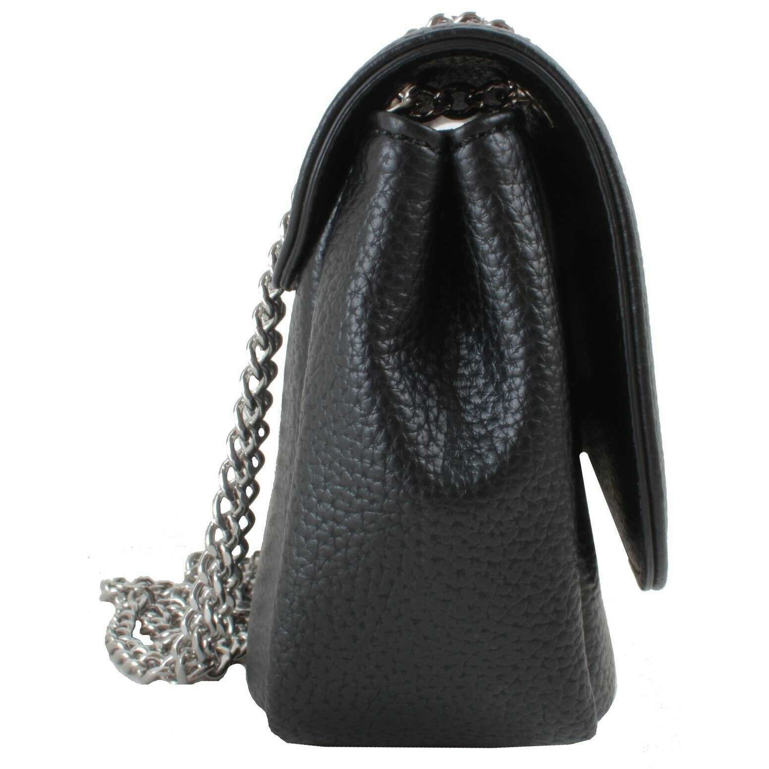 Czarna damska torebka na ramię z łańcuszkiem, wykonana w 100% z poliuretanu, zaprojektowana przez projektantkę Vivienne Westwood. Wymiary: 14 cm (wysokość) x 22,5 cm (szerokość) x 8 cm (głębokość). Wszystkie torby są dostarczane w komplecie z opakowaniami Vivienne Westwood. Torebka na ramię Vivienne Westwood Grain Chain - czarna to stylowy i praktyczny dodatek o oszałamiającym i eleganckim wykończeniu, który sprawi, że będziesz się wyróżniać. Wykonany z wysokiej jakości materiałów, posiada łańcuszek na ramię zapewniający wszechstronne możliwości noszenia, co czyni go eleganckim wyborem na każdą okazję. Ta wspaniała torebka na łańcuszku, idealna do dodania odrobiny luksusu każdemu strojowi, jest niezbędna do uzupełnienia Twojego wyglądu.