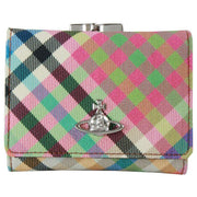Torebka Vivienne Westwood Heather w kratę z małą ramką - beżowa/różowa/niebieska
