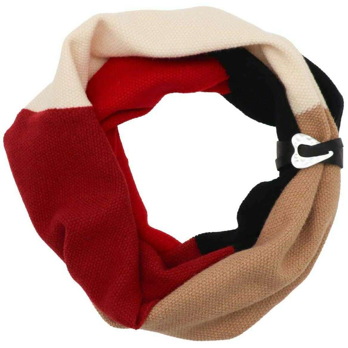 Komin ze sztucznej skóry Zelly z detalami - czerwony/kremowy/beżowy
