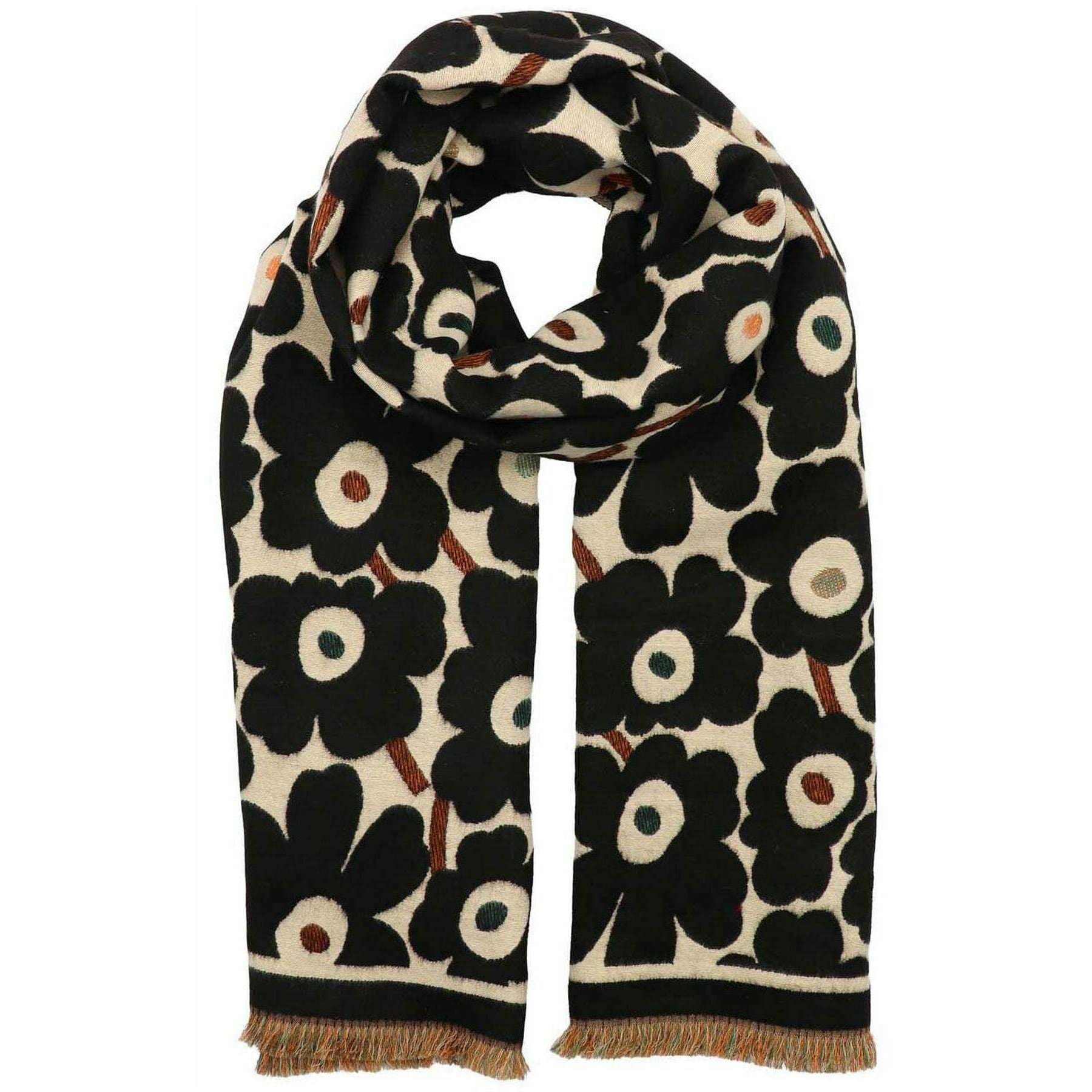 Zimowy szalik Zelly w kwiatowe wzory - czarny