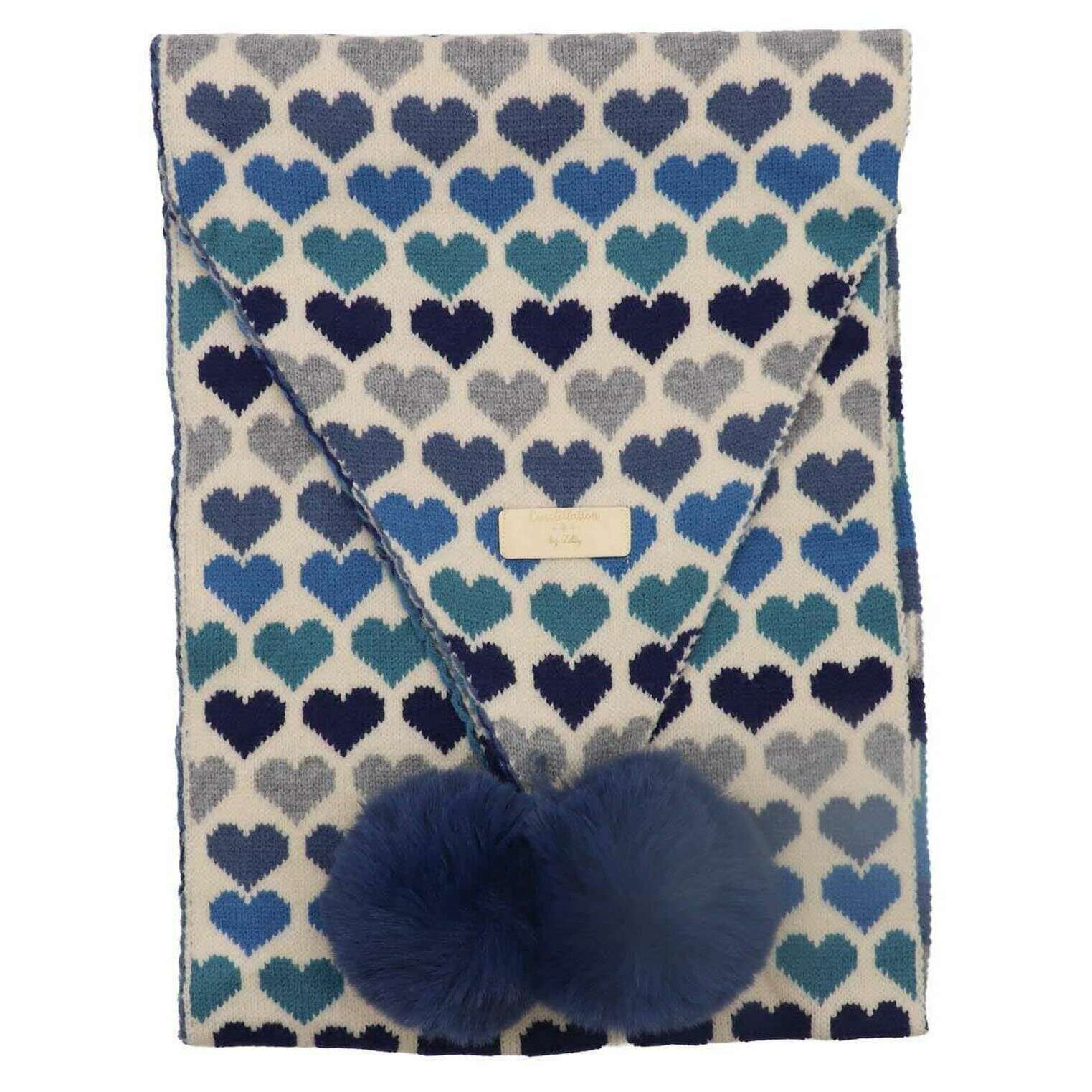 Szalik Zelly Heart z pomponami - niebieski
