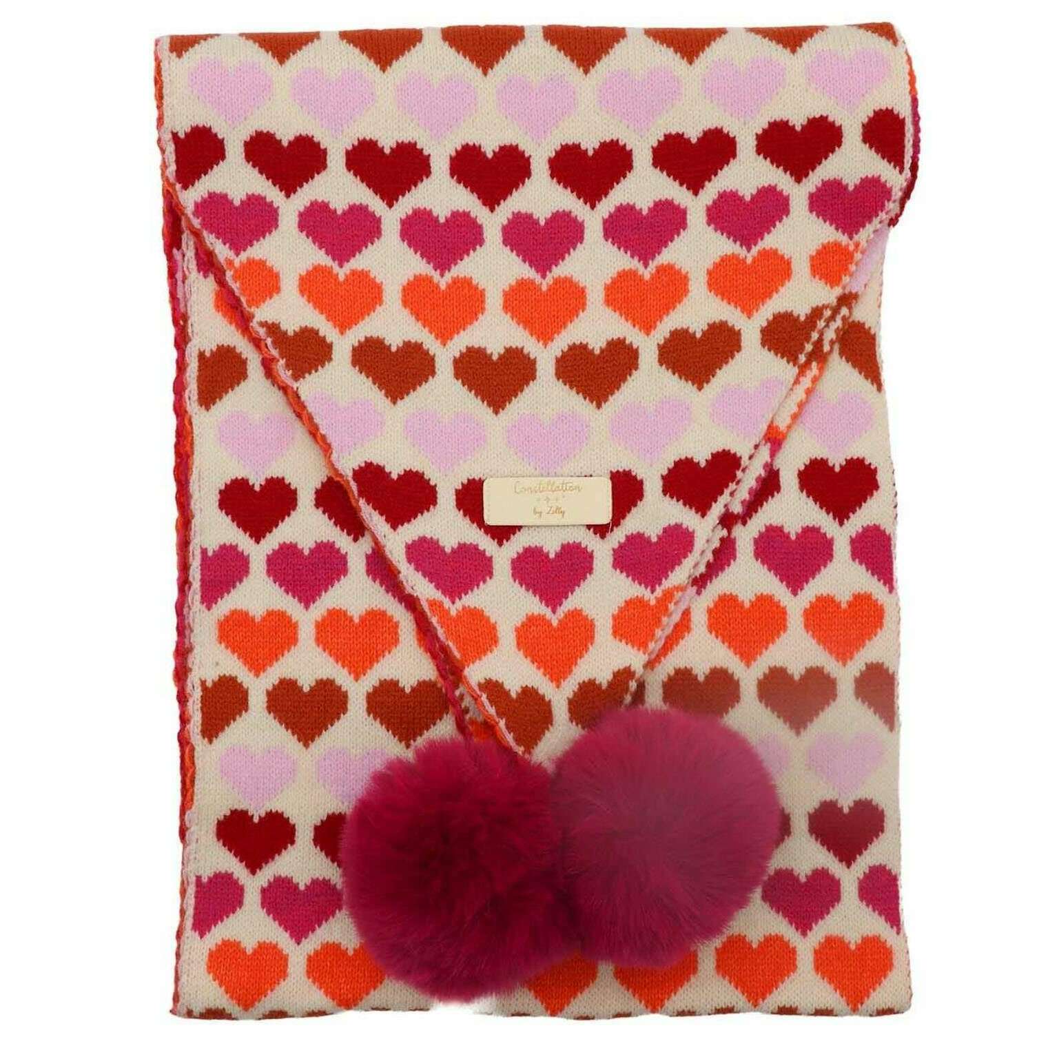 Szalik Zelly Heart z pomponami - różowy/czerwony