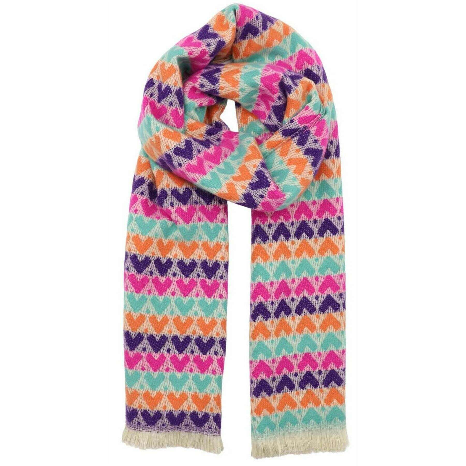 Zimowy szalik Zelly Hearts - Fioletowy/Pomarańczowy/Różowy