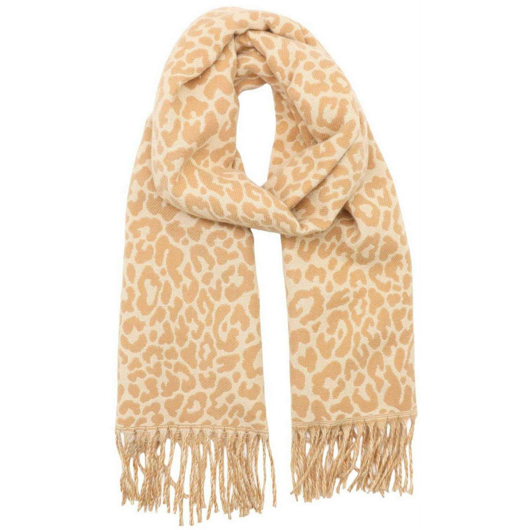 Zimowy szalik Zelly Leopard Line z nadrukiem - kremowy